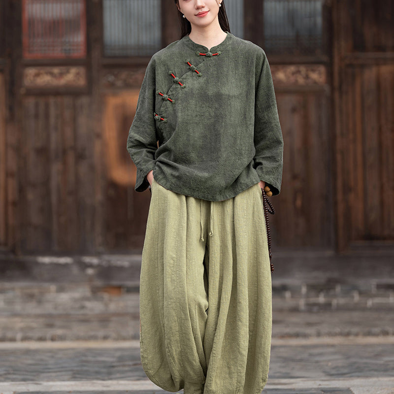 Vintage Chinese stand-up collar frog button short-sleeved cotton shirt, summer casual loose cotton shirt 20250328