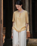 Frog Button Cotton  Linen Shirt, Summer Chinese Vintage Women Sandwashed Cotton  Linen T-shirt 20240728
