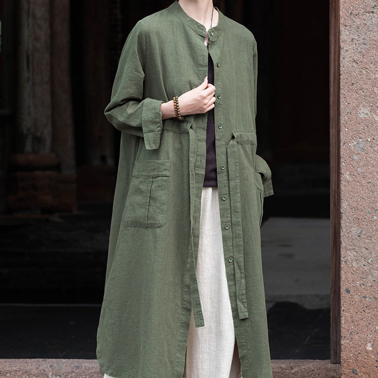 Long Sleeve Linen Long Shirt, Summer Standing Collar Cotton Jacket