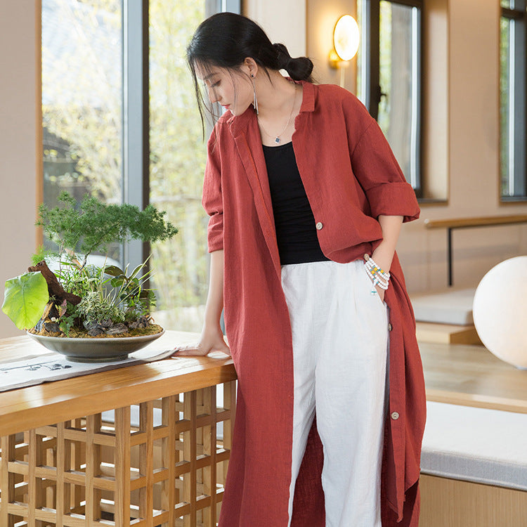 Loose cotton linen shirt, vintage casual cotton linen washed shirt