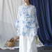 Loose Summer Printed Ramie Shirt, Standing Collar Frog Button Chinese Casual Shirt 20240803