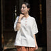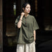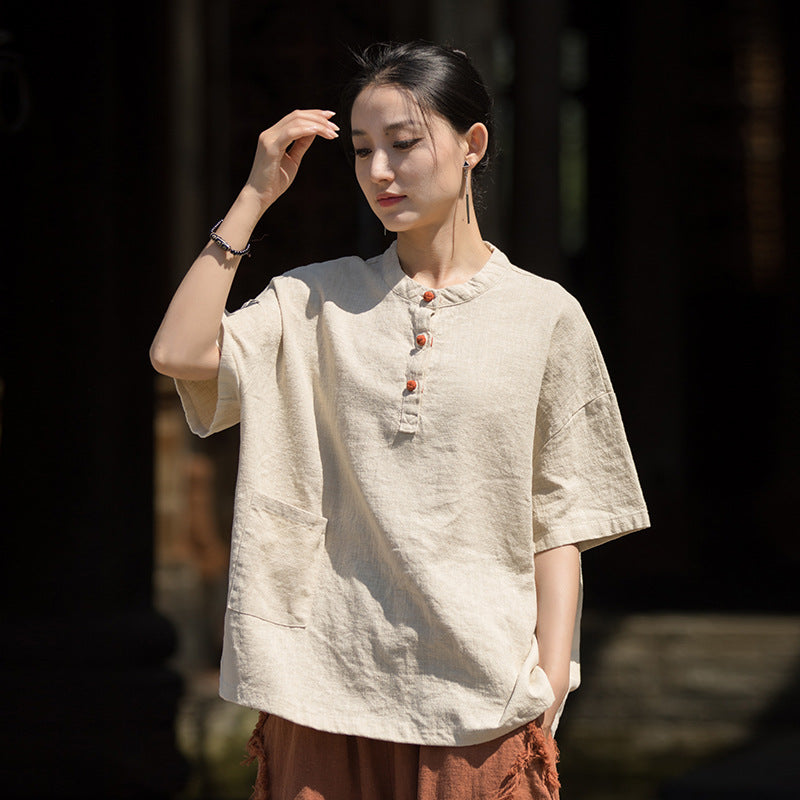 Summer Cotton Chinese t-shirt,cotton linen Washed Plate Button Women's Short Sleeve T-Shirt 20240714