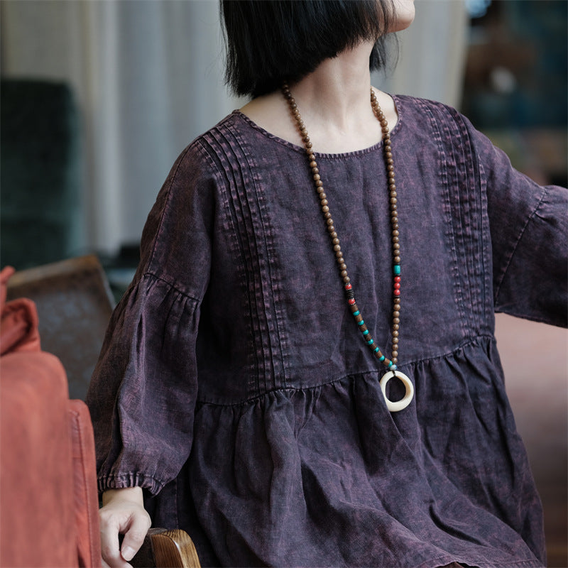 Purple linen shirt,vintage washed linen shirt,casual linen shirt plus size