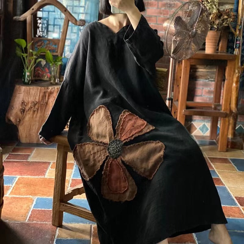 Vintage Embroidered Patchwork Linen Dress, Heavy Embroidered Patchwork Linen Dress