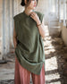 Vintage Standing Collar Cotton Linen Dress, Sleeveless Summer Dress