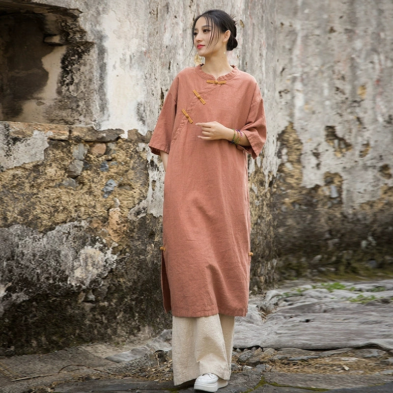 Women Summer  Cotton  Linen dress, Vintage Chinese  Dresses 20250417