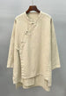 Women's Vintage Chinese Frog Button Long Sleeve Cotton Linen Shirt, Embroidery Standing Collar Splicing Irregular Loose Blouse 20240920